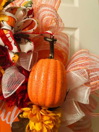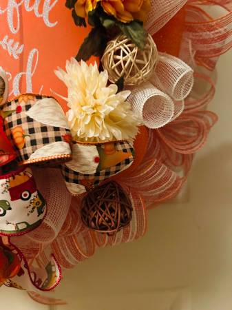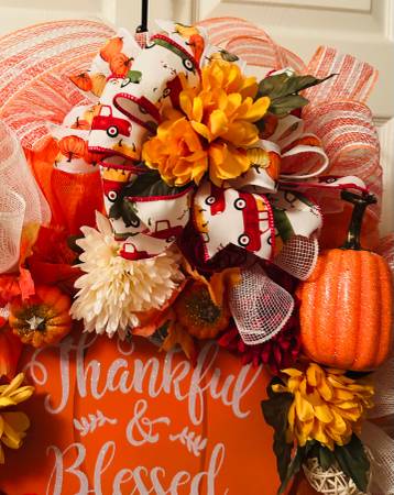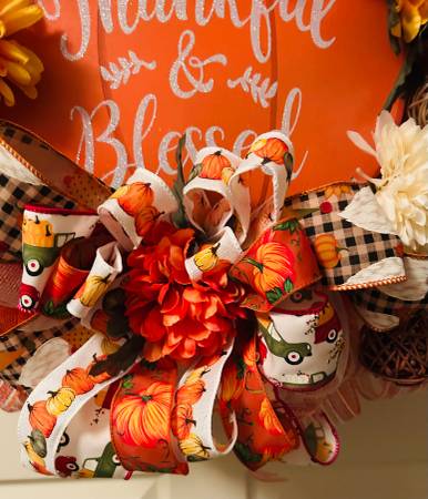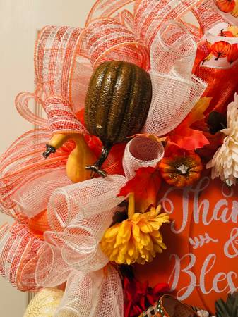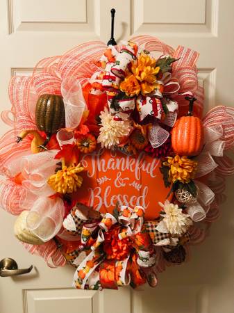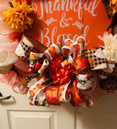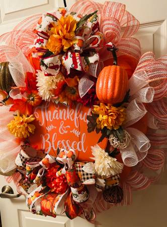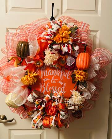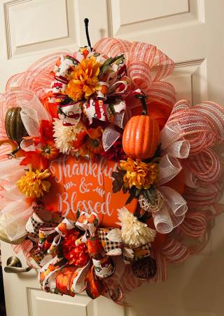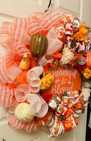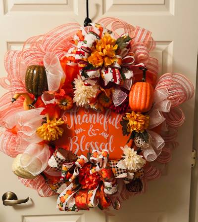 This is made on a 15” wreath raised work frame. It has 1 roll of 20” mesh, 1 roll of 10” mesh plus ribbon mesh. It has embellishments and ribbons to match the plaque. It measures approximately 30” high 32” wide and 10” in depth. It is huge and beautiful.