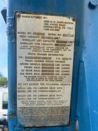 2009 International 4000 Rollback. 234,000 miles. Max Force 7.6 liter engine. 21 ft Jerri Dan aluminum bed with a Jerri Dan side puller. 22.5 tires fully equipped for towing.