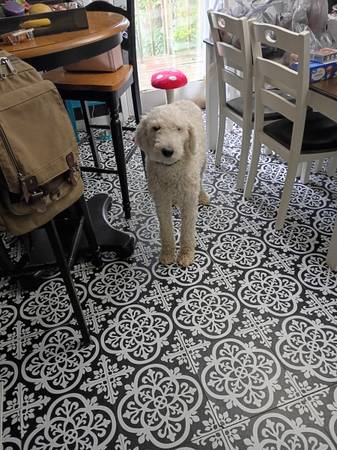 I need to re-home my golden doodle . He is a year and half old . He's good with kids and other dogs as well . He loves attention . His name is Oakley , he's fixed and comes with a crate , food and bowls. Also a leash , harness and blanket . He was groomed 2 weeks ago . Rehoming fee 800 . He's up to date on vaccines.