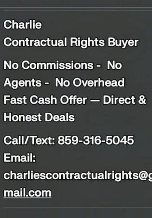 Private buyer for mobile homes in Kentucky. No agents, no public listings. I’m a legitimate, private buyer offering a clean, discreet process using an option contract that gives me a contractual right to purchase. If you’re behind on your loan, facing high fees, or simply want a fast, private sale, I can help with a respectful, straightforward offer. No pressure, no exposure, and I’ll handle the paperwork quickly.Call or text Charlie at to learn more. I’m a private individual looking to make fair, fast deals with minimal hassle, serving Kentucky sellers within a targeted Lexington to Morehead radius.No realtors or Investors You must be Owner of loan as well as Name on title and Valid State ID .